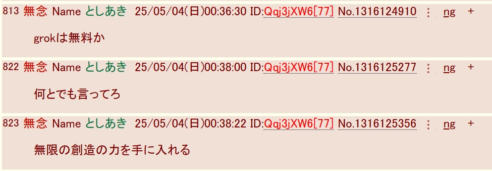 | … | 995無念Nameとしあき26/02/26(木)03:48:51No.1390078829+初見で申し訳ないが会話の流れ関係なくAI生成物っぽいのペタペタ貼ってるのは別の半コテか荒らし? |