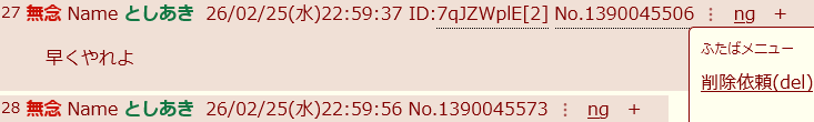 | … | 75無念Nameとしあき26/02/25(水)23:11:31No.1390048265+ナンオブマイビジネスので |