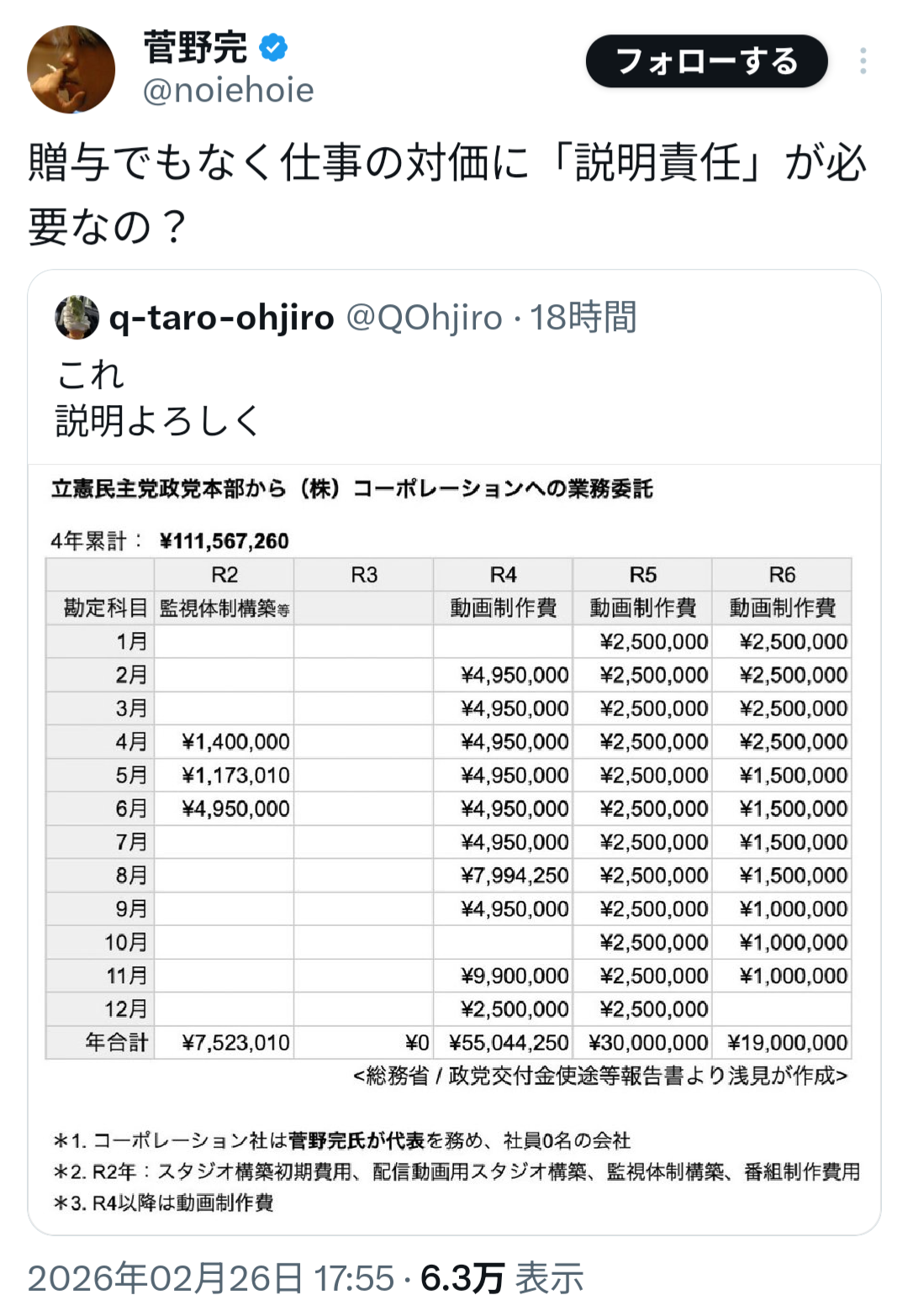 | … | 34無念Nameとしあき26/02/26(木)23:26:24No.1390256138そうだねx6>>立憲の2億4000万の話題 |