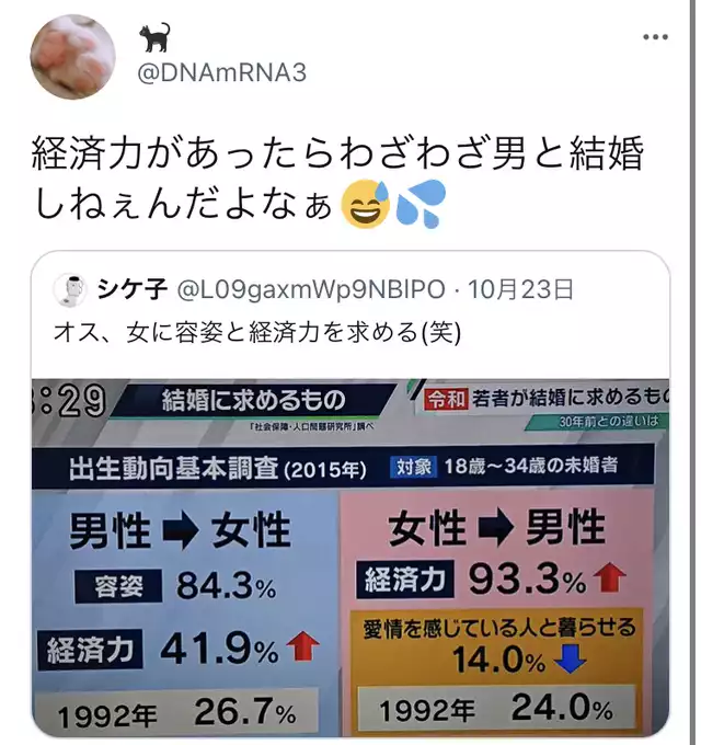 | … | 150無念Nameとしあき26/02/28(土)00:15:17No.1390480190+高望み女性が増加してるのが少子化の根本原因なのでは??? |
