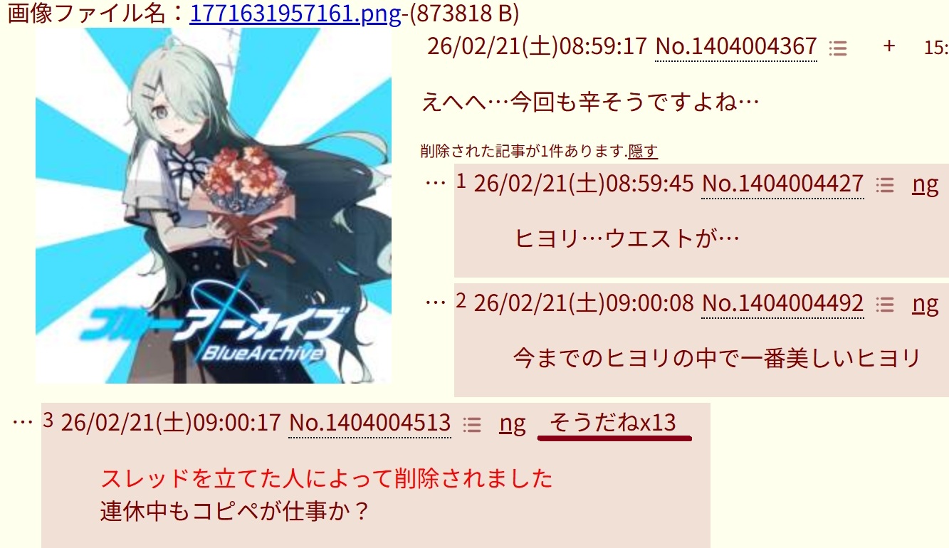 | … | 7無念Nameとしあき26/02/27(金)23:08:31No.1390463535+ 1772201311375.jpg-(100954 B) ブルアカ人気に嫉妬してる? |