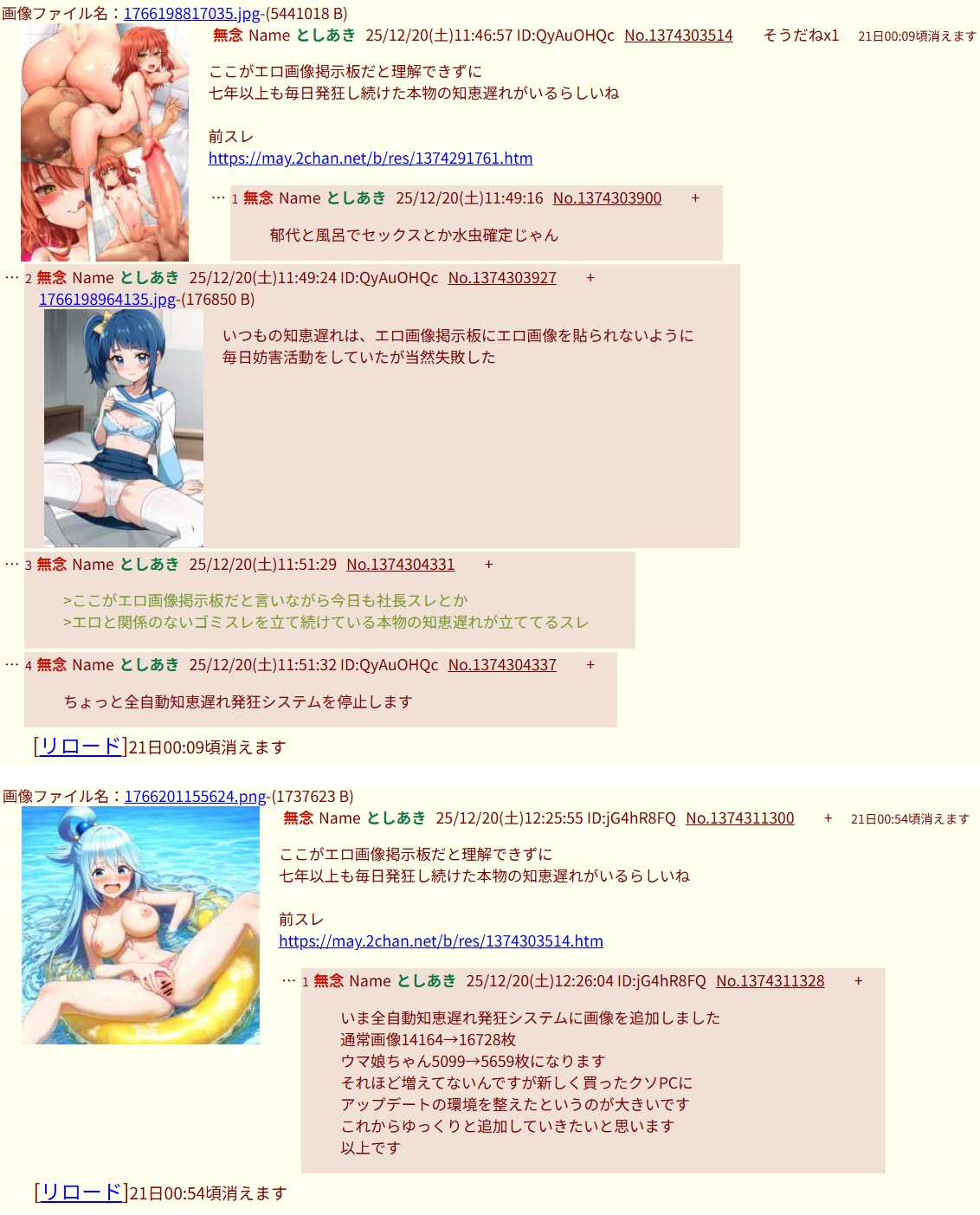 | … | 34無念Nameとしあき26/02/27(金)23:27:54No.1390468849そうだねx6ふたばから出て行けよ!邪魔者!!! |