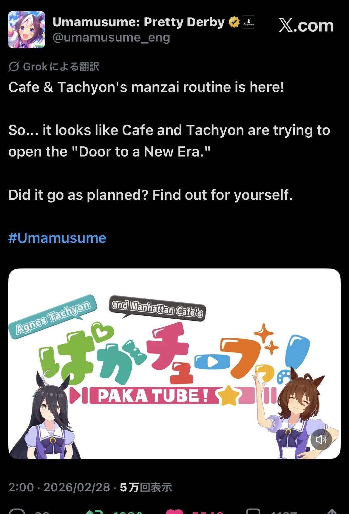 | … | 870無念Nameとしあき26/02/28(土)05:41:10No.1390506156そうだねx2 1772224870522.png-(185724 B) https://x.com/umamusume_eng/status/2027413415975588328 |