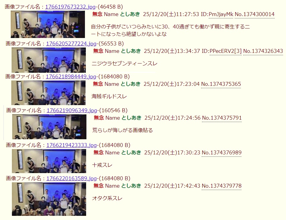 | … | 74無念Nameとしあき26/02/28(土)00:44:15No.1390485381+ 1772207055989.jpg-(234742 B) >スレ立てられたくなかったらスレ画以上にもっとたくさんのオフ会集合写真を公開し続けて効いていない姿勢をしっかりアピールすべきなんだよね |