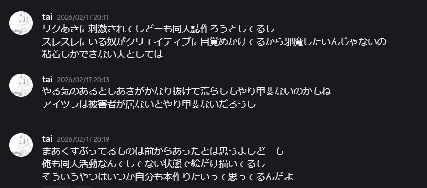 | … | 337無念Nameとしあき26/02/28(土)02:53:04No.1390499068+壁打ちしてたウォッチャー煽りくんがいつの間にか消えてて草 |