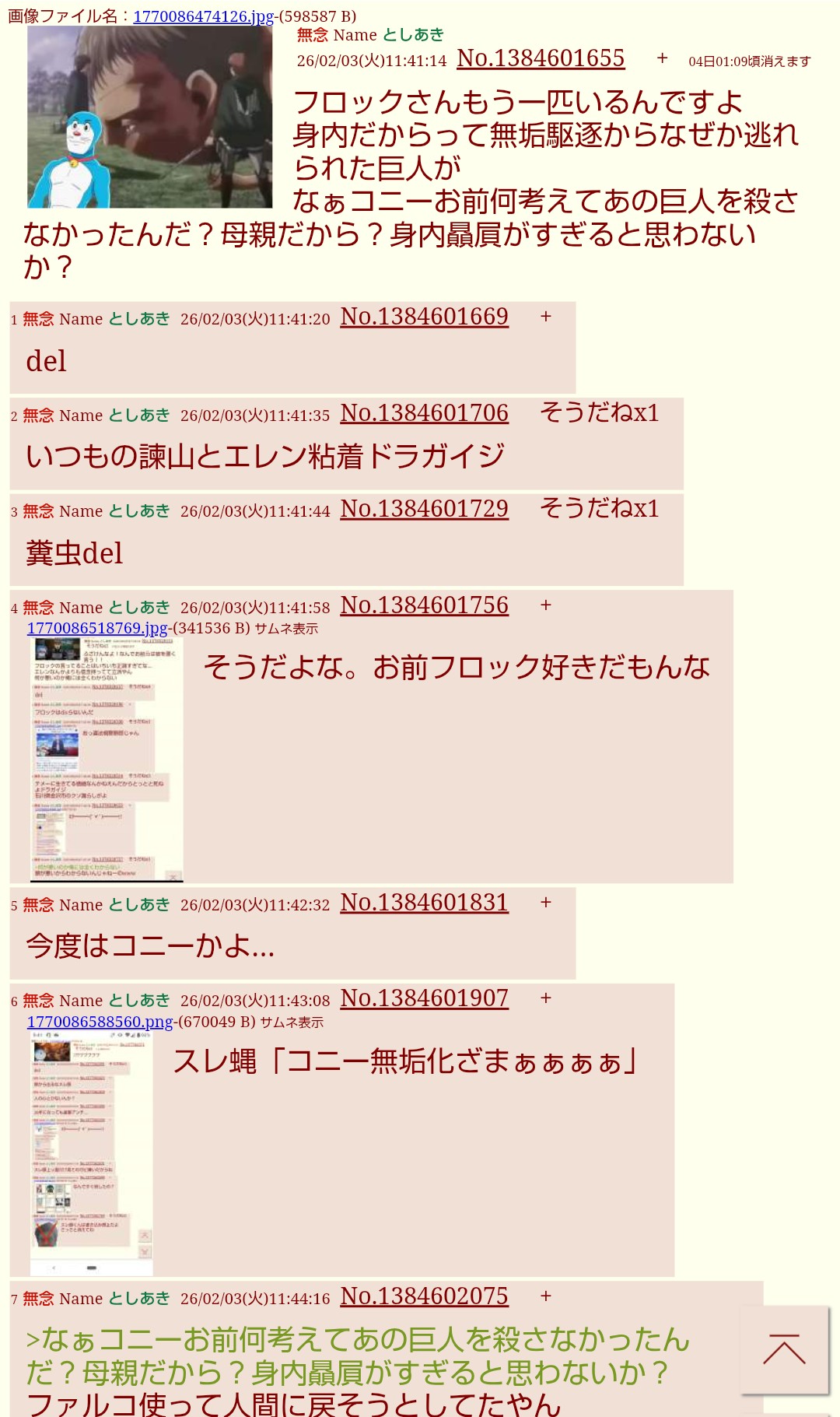 | … | 2無念Nameとしあき26/02/28(土)08:56:29No.1390522159+諫山粘着スレ蝿del |
