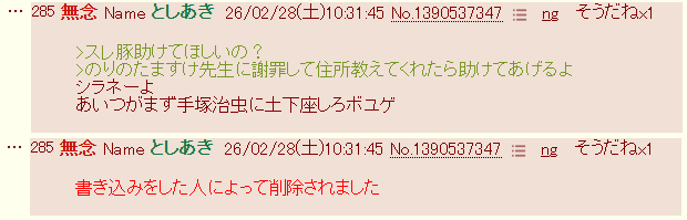 | … | 428無念Nameとしあき26/02/28(土)13:21:31No.1390569314+>悔しかったらこのスレのログをナザレンコさんに送ってもいいんだよw |