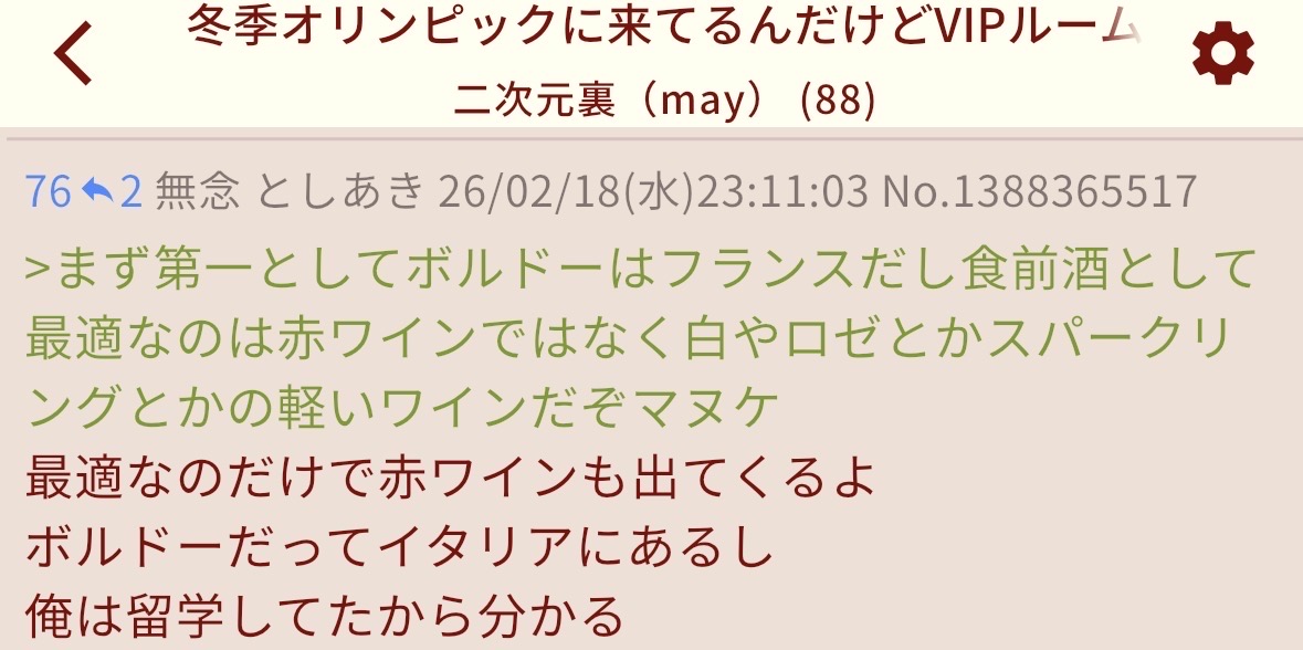 | … | 378無念Nameとしあき26/02/28(土)11:21:42No.1390545870+>構う人間ガー暇なんだねーと言いつつ |