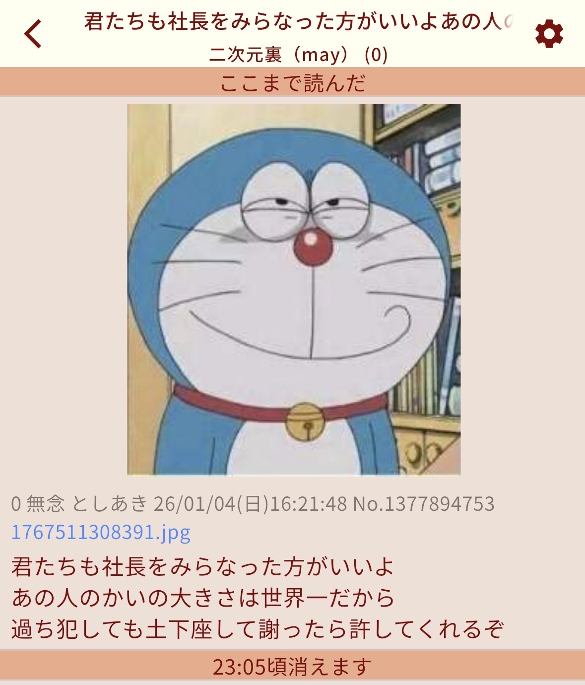 | … | 345無念Nameとしあき26/02/28(土)10:56:04No.1390541480そうだねx2ドラえもんの作者間違えた恥に耐えきれなくてDD論か |