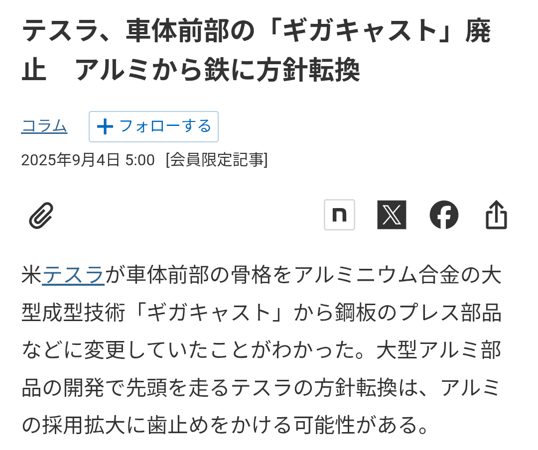 | … | 61無念Nameとしあき26/02/28(土)13:32:10No.1390571512+テスラってギガキャストやめるんじゃなかった? |