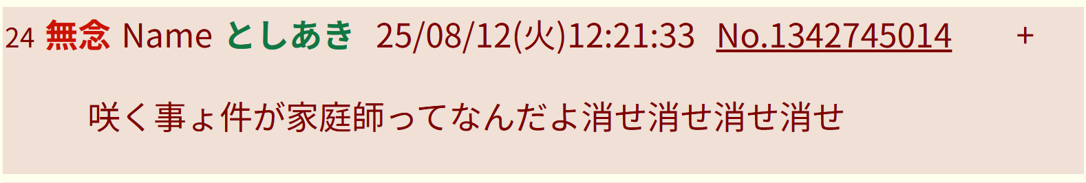 | … | 88無念Nameとしあき26/02/28(土)20:41:15No.1390672042そうだねx1普通の荒らしなら身バレや身内の不幸とかで勢いがそがれるんだがコレの凄いのは勢いがブーストされる所 |