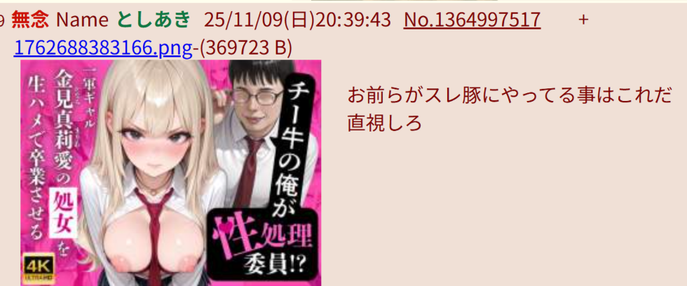 | … | 253無念Nameとしあき26/02/28(土)22:20:49No.1390701216+>お、ここでの工作が下火になったと思いきや17人粘着スレが立ったな |