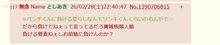 | … | 32無念Nameとしあき26/02/28(土)20:23:32No.1390666786そうだねx1>俺はなぁ!!ふたばちゃんねるの唯一神なんだよ!!! |