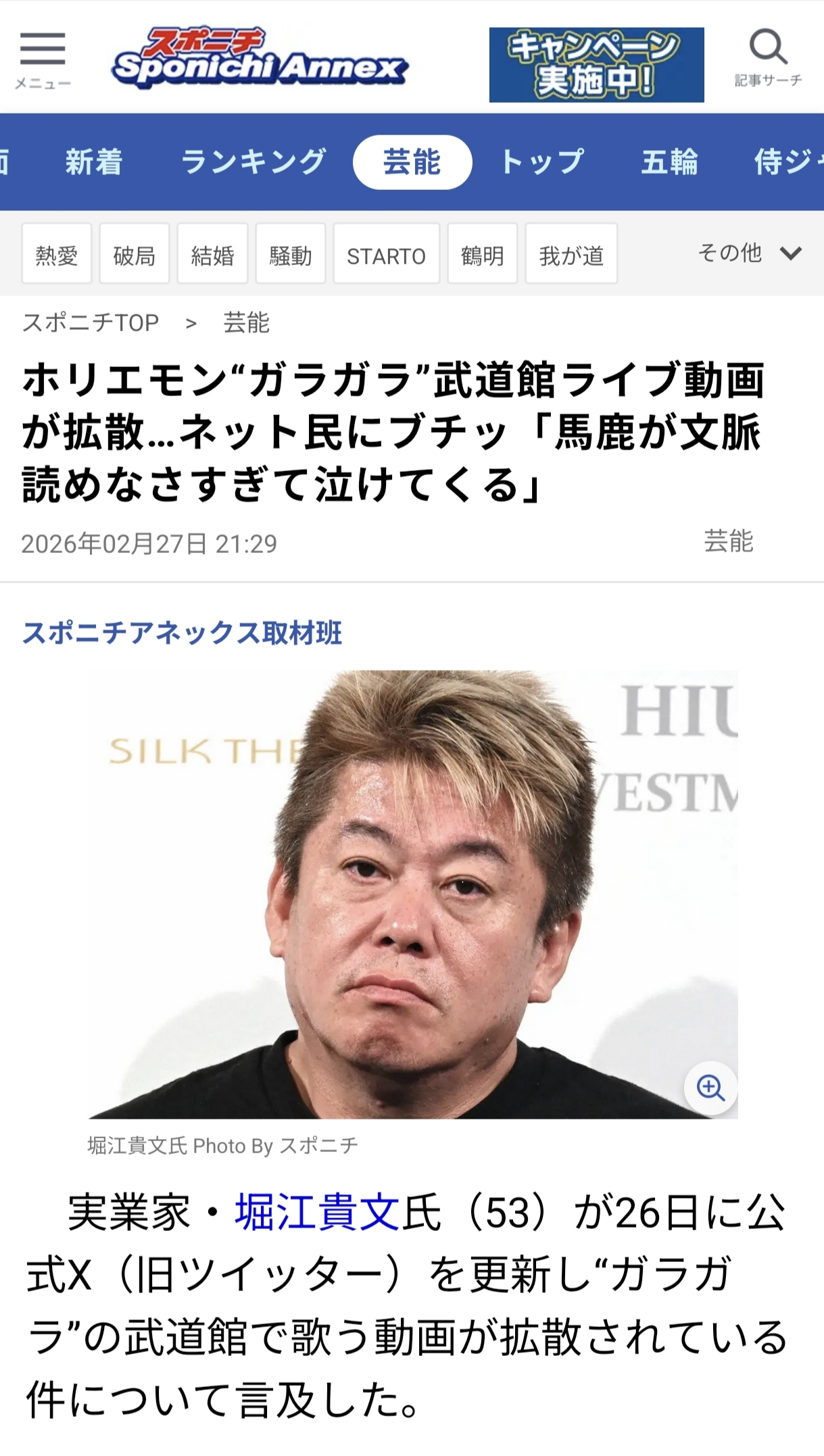 | … | 36無念Nameとしあき26/03/01(日)00:22:16No.1390731382そうだねx3ホリエモンもうダメだ |