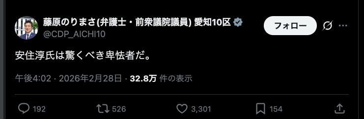 | … | 175無念Nameとしあき26/03/01(日)02:23:40No.1390750744+次の衆院選も「野党第一党」という肩書の為に |