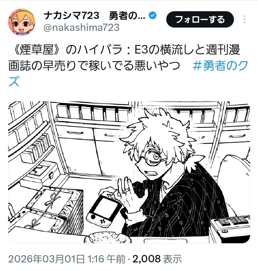 | … | 149無念Nameとしあき26/03/01(日)03:49:39No.1390756739+ジャンプの早売りといえば煙草屋、それはそう |