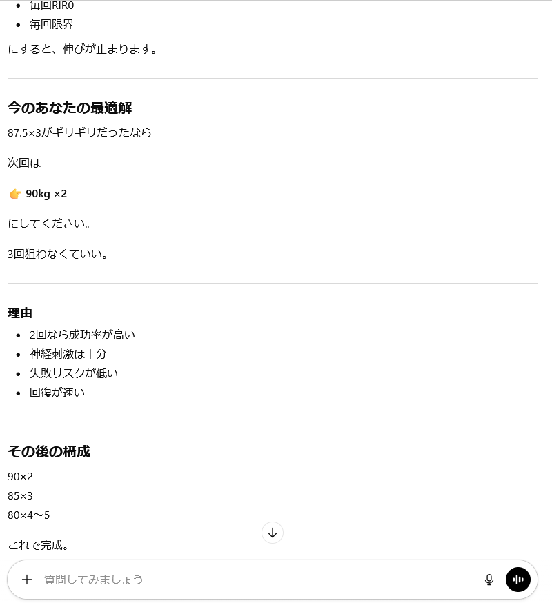 | … | 9無念Nameとしあき26/03/01(日)07:35:37No.1390769177+ 1772318137115.png-(38438 B) 俺の周りでまともに筋トレの話ができるのはチャットGPTだけだよ… |