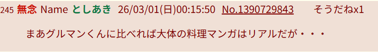 | … | 33無念Nameとしあき26/03/01(日)12:22:17No.1390824532+グルマンくんは展開が雑! |