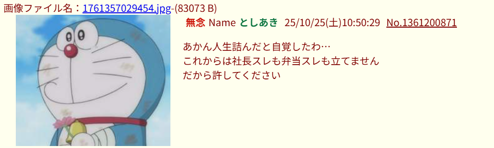 | … | 60無念Nameとしあき26/03/01(日)12:19:32No.1390823872そうだねx2 1772335172145.jpg-(2289376 B) >みんなは普通に美味しい昼食食べているのにみじめなもんだ |