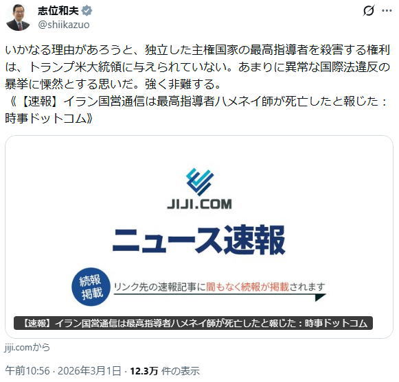 | … | 509無念Nameとしあき26/03/01(日)16:19:06No.1390878715+>日本はこういう時に様子見ばっかりだからだめなんじゃないの? |