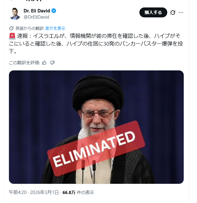 | … | 537無念Nameとしあき26/03/01(日)16:23:23No.1390879616+>>イスラエルが消滅すれば平和になるのに |