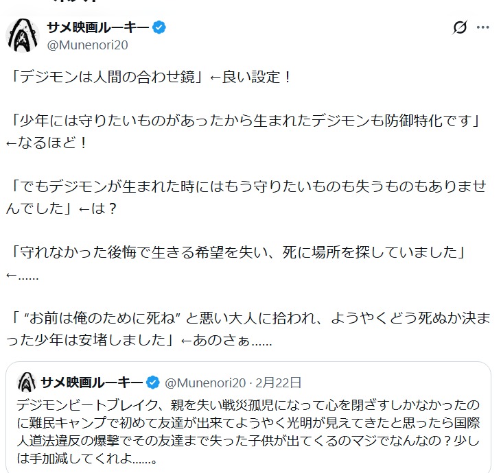 | … | 924無念Nameとしあき26/03/01(日)16:26:39No.1390880301+登場人物への思い入れも物語への没入感も |