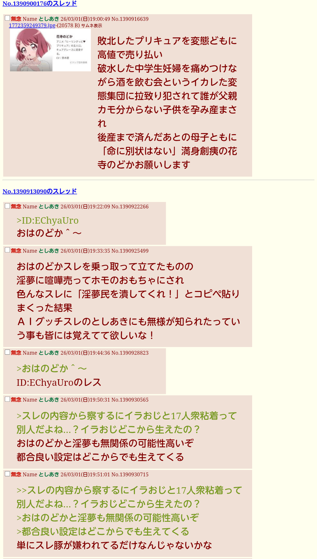 | … | 28無念Nameとしあき26/03/01(日)23:56:37No.1391003644そうだねx5 1772376997270.png-(115809 B) >AIリクエストスレの一部プリキュアリクがやけにリョナ度高めなんで |