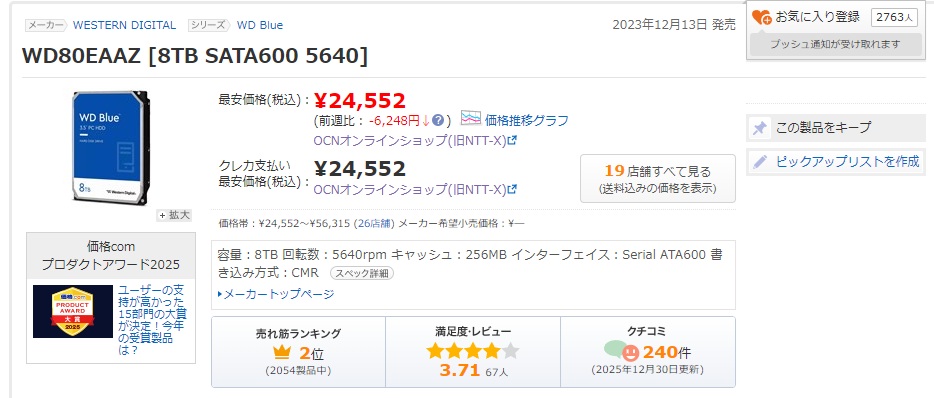 WDのHDD赤8TB...高いままだなぁ