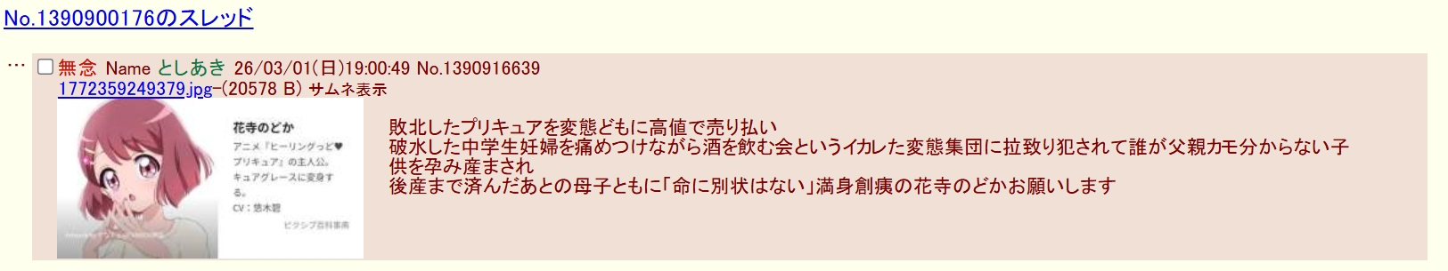 | … | 38無念Nameとしあき26/03/02(月)13:27:23 ID:kbAqGYZMNo.1391084847+ホロライブスレ荒らしてんのは2434fanのマサキとマリアでは |