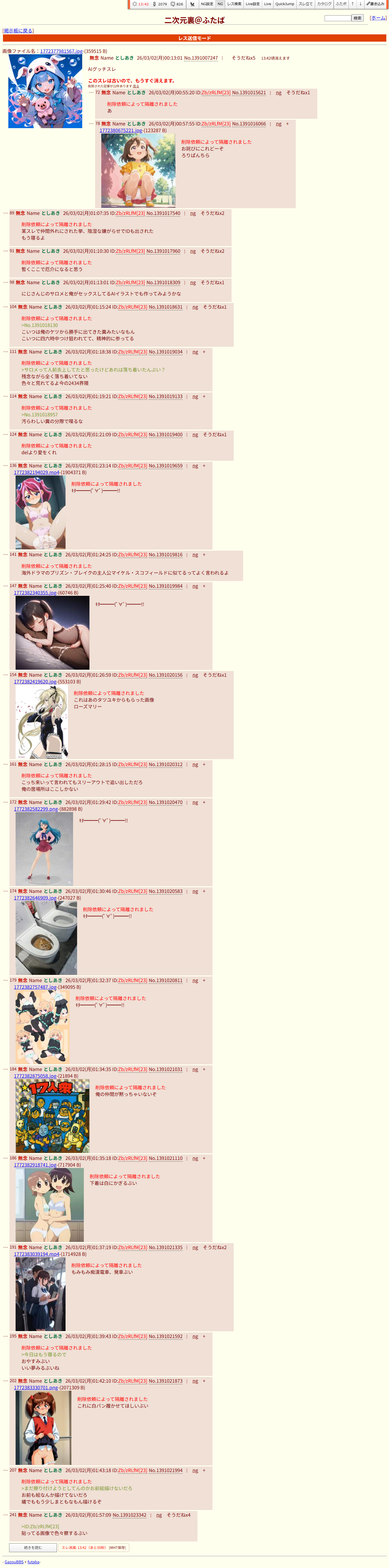 | … | 16無念Nameとしあき26/03/02(月)12:31:46 ID:qVHT416sNo.1391074635+書き込みをした人によって削除されました |