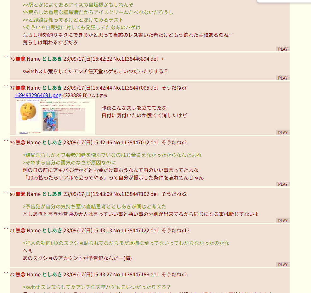 | … | 296無念Nameとしあき26/03/02(月)13:07:16No.1391081718+>何者でもない荒らしの擦り付け対立煽り上手く行ってる体なの毎回笑う |