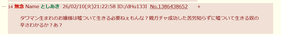 | … | 14無念Nameとしあき26/03/02(月)10:47:53No.1391058838+昔から不思議なんだけどスレ豚ってさー |