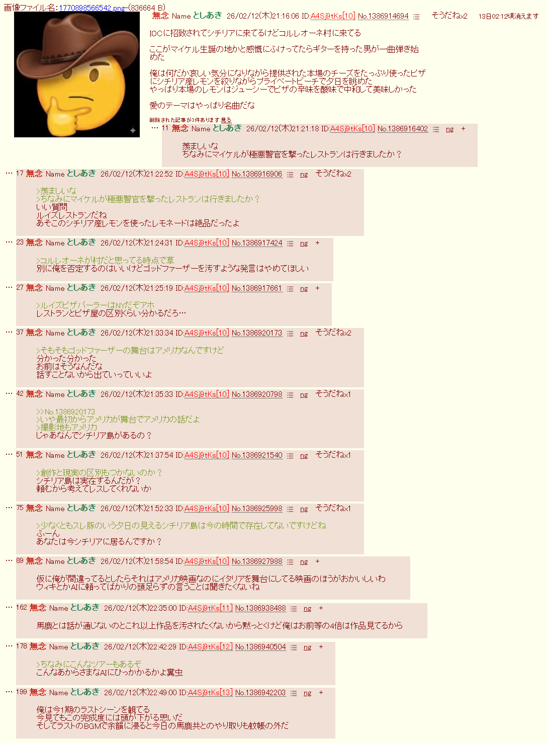 | … | 47無念Nameとしあき26/03/02(月)10:56:33No.1391060009+>そのスレとこのスレの主が一緒だって根拠は? |