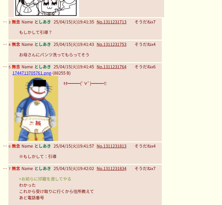 | … | 201無念Nameとしあき26/03/02(月)11:52:23No.1391067769+せんせぇは毎日ブル兄スレに現れて暴れてるからドラえもんに嫉妬して叩くよりやりがいがあるぞ |