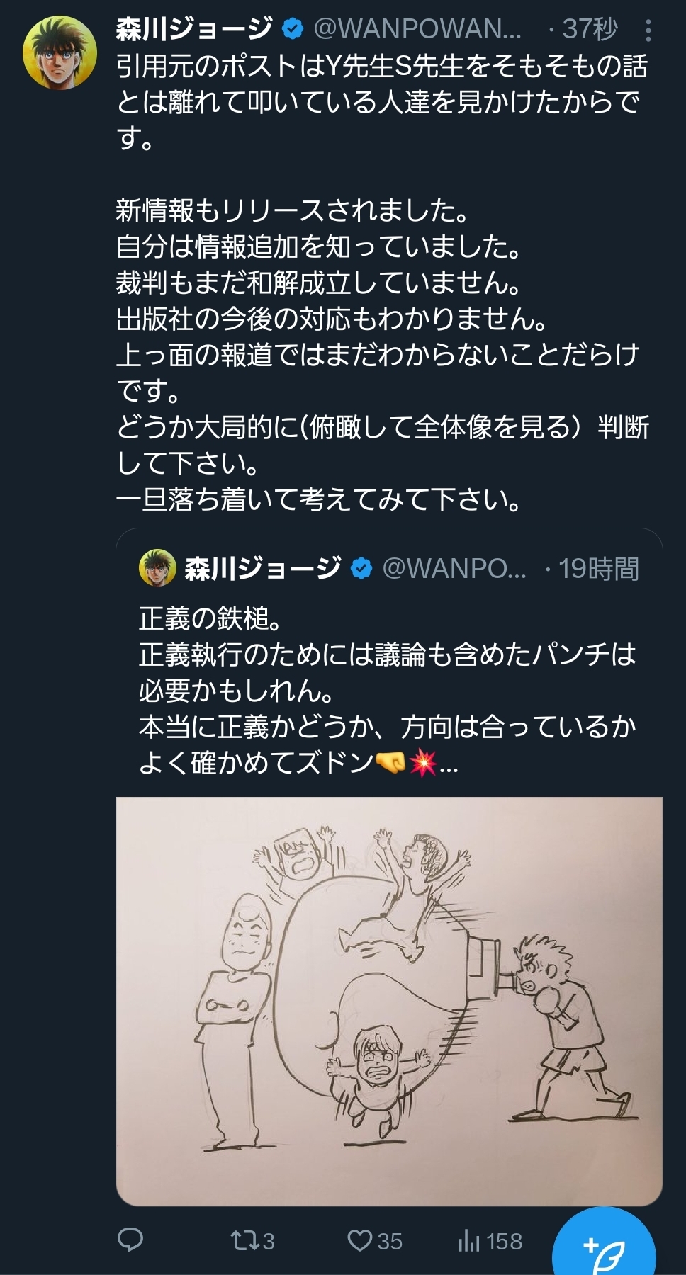 | … | 990無念Nameとしあき26/03/02(月)20:18:41No.1391164124そうだねx3>いやぁ絶対性犯罪者を起用したマンガワンって感じで同じように炎上して掲載中止になってたと思うぞ |