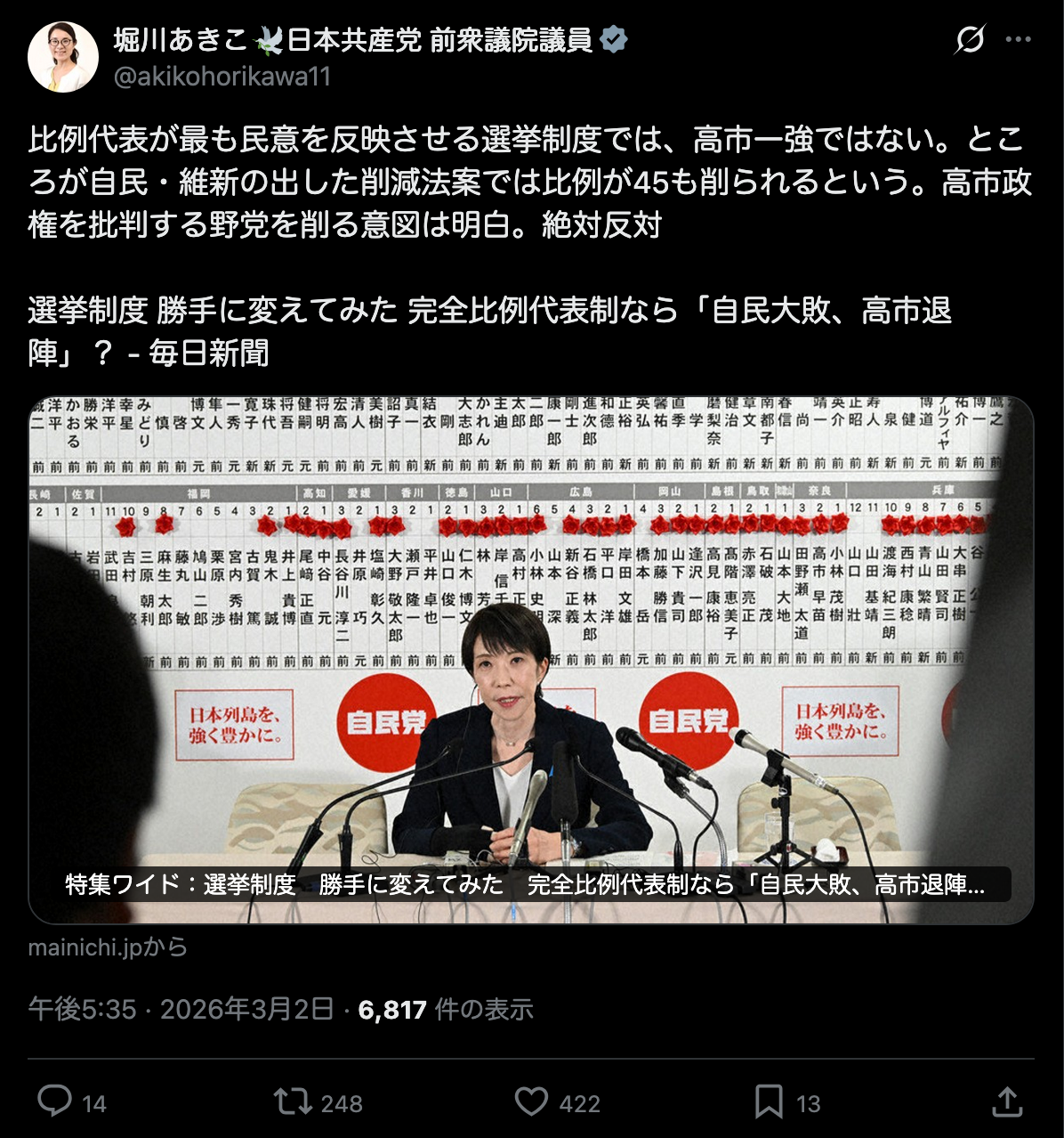 | … | 22無念Nameとしあき26/03/02(月)21:15:48No.1391182712+制度変えるどころか結局比例の数減らす気ですよ |
