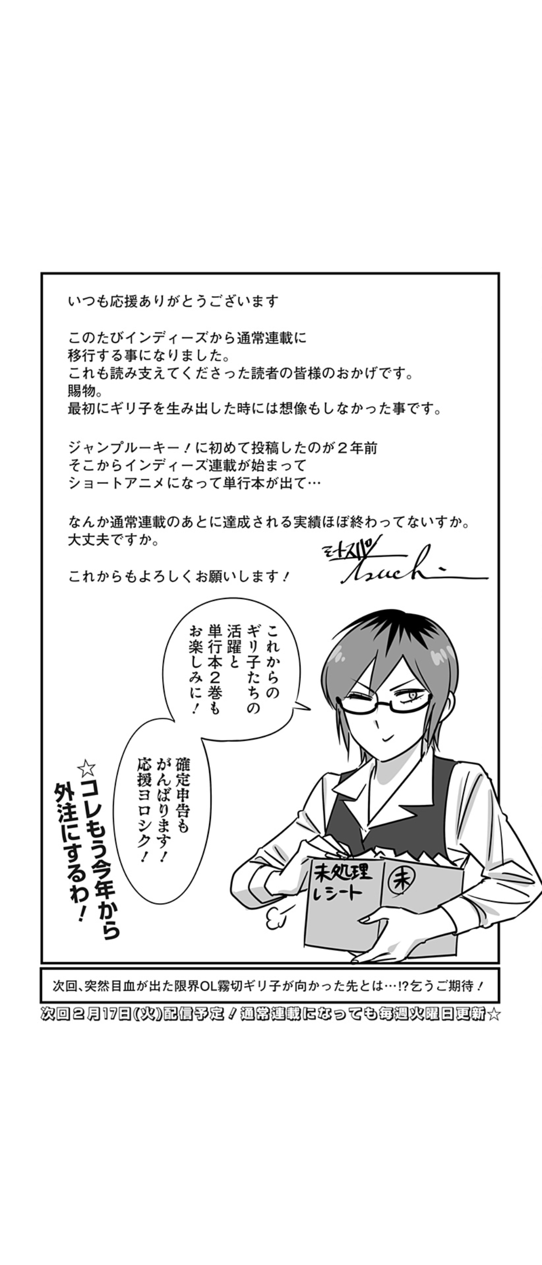 | … | 77無念Nameとしあき26/03/03(火)00:46:03No.1391235551+>通常連載になったのはいいけど本業との兼ね合いますます大変そうだな |