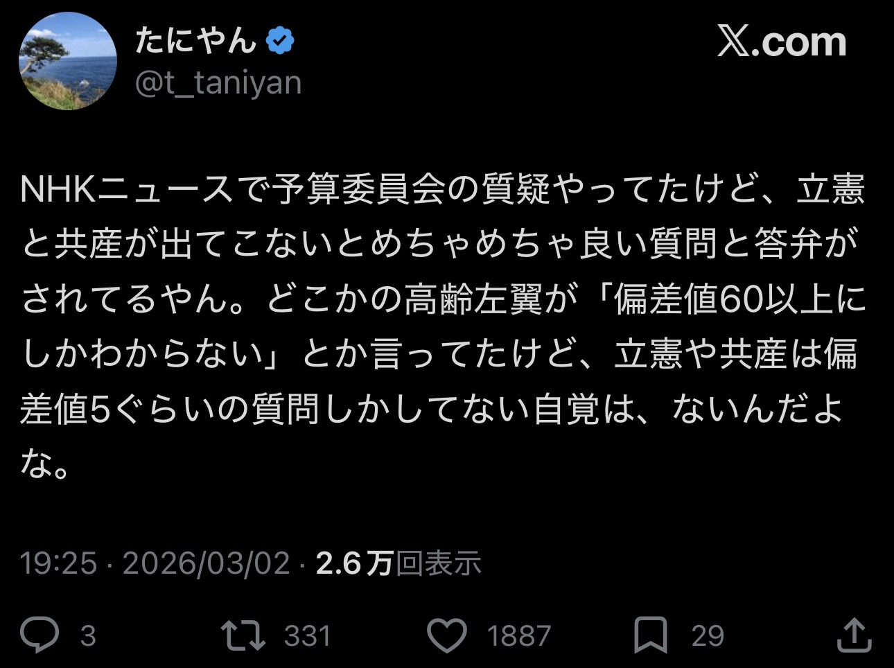 | … | 9無念Nameとしあき26/03/03(火)00:59:18No.1391237477+高齢左翼は無駄に高学歴だったりするからなぁ |