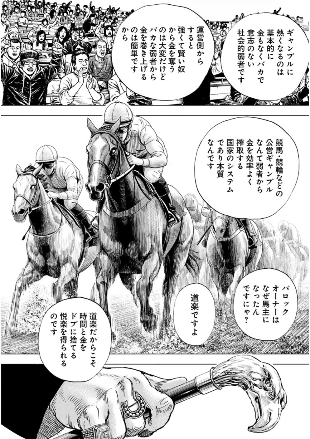 | … | 186無念Nameとしあき26/03/03(火)01:55:15No.1391243291+ 1772470515115.jpg-(485475 B) あの大人気本格派格闘漫画の最新話で競馬批判してるじゃん猿先生 |