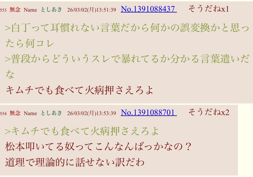 | … | 71無念Nameとしあき26/03/03(火)08:38:34No.1391267372+ 1772494714263.jpg-(134331 B) 昨日見たスレでも松本叩いてる連中って何かこう変な思想強めだから |