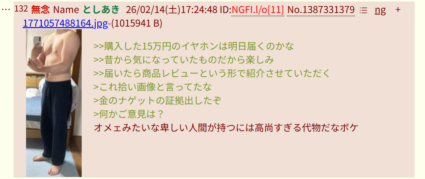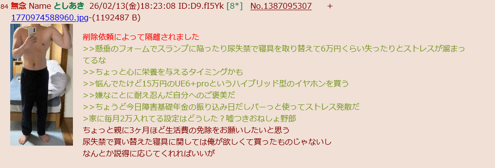 | … | 74無念Nameとしあき26/03/03(火)18:47:36No.1391364066そうだねx1懸垂ナマポ豚 |
