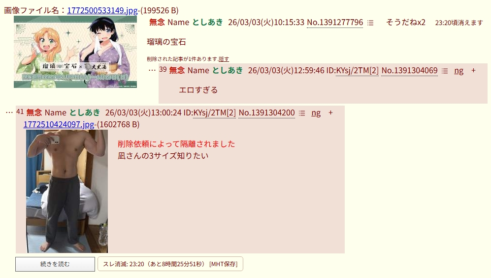 | … | 97無念Nameとしあき26/03/03(火)19:00:30No.1391367100+>削除依頼によって隔離されました |