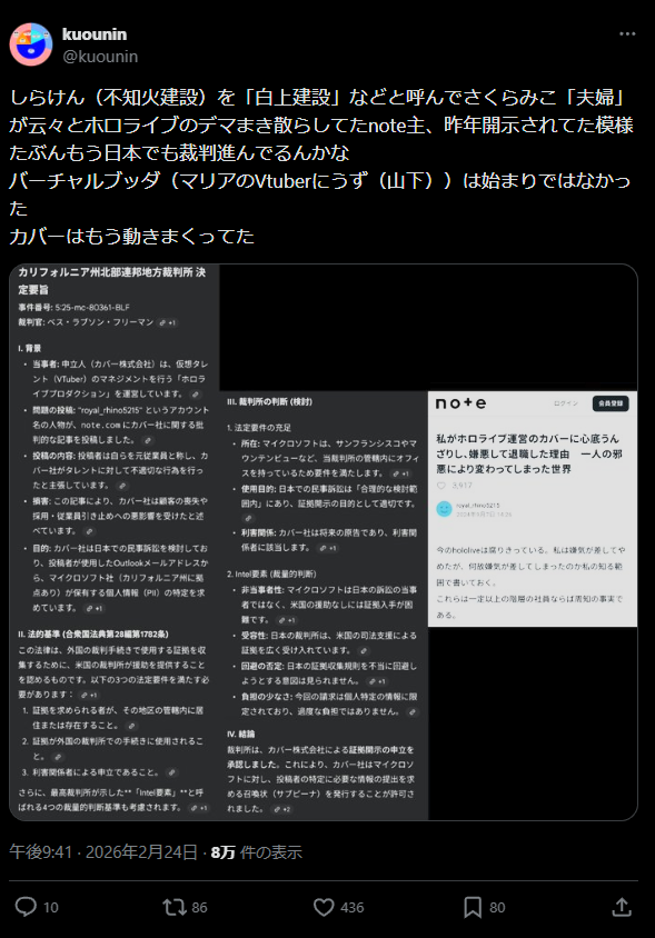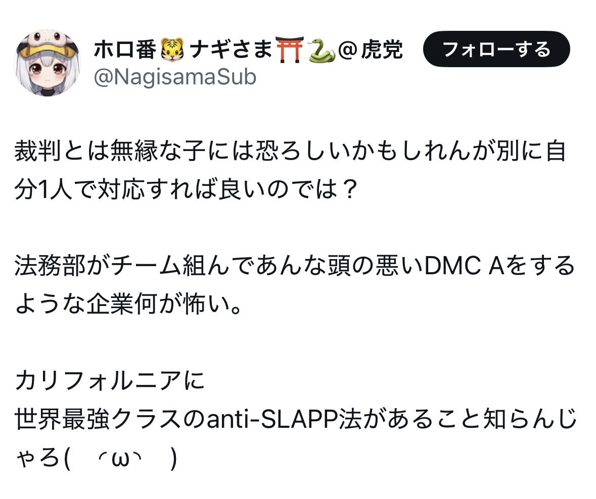 | … | 81無念Nameとしあき26/03/03(火)19:28:14No.1391374283+ナギはとっくに開示請求通されてて米国で訴訟されるだろうって |
