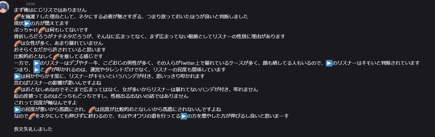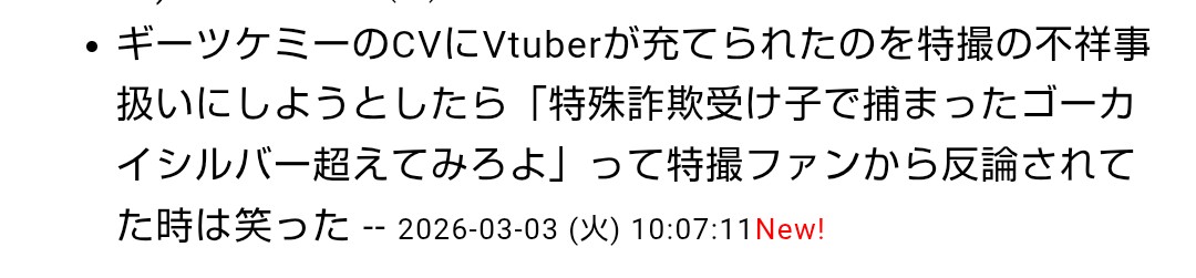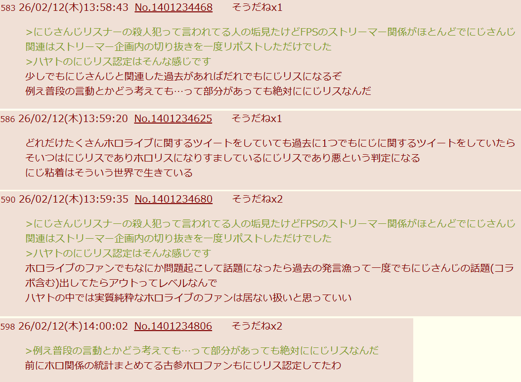 | … | 940無念Nameとしあき26/03/03(火)23:15:28No.1391436692そうだねx2過激なリスナーがほかの配信者を攻撃してるのとか見ると |