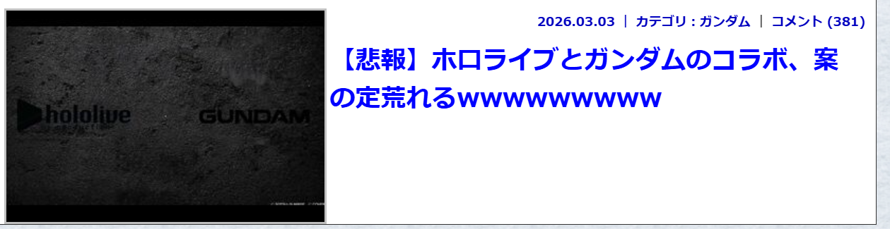 | … | 89無念Nameとしあき26/03/03(火)19:31:17No.1391375080そうだねx21そもそもバンダイって何回もホロのスポンサーになってるしな… |