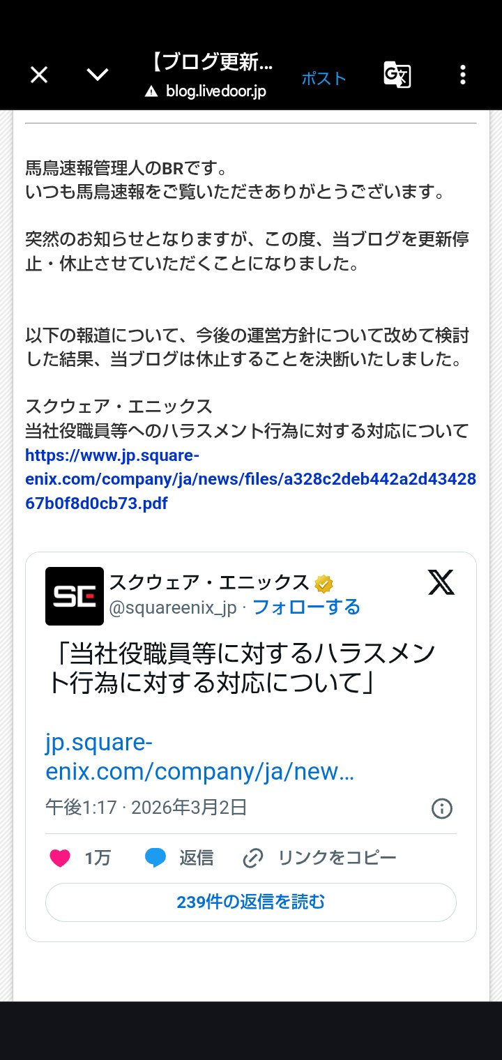 | … | 58無念Nameとしあき26/03/03(火)19:19:51No.1391372174そうだねx2>スクエニも異常な叩かれ方してたからな |