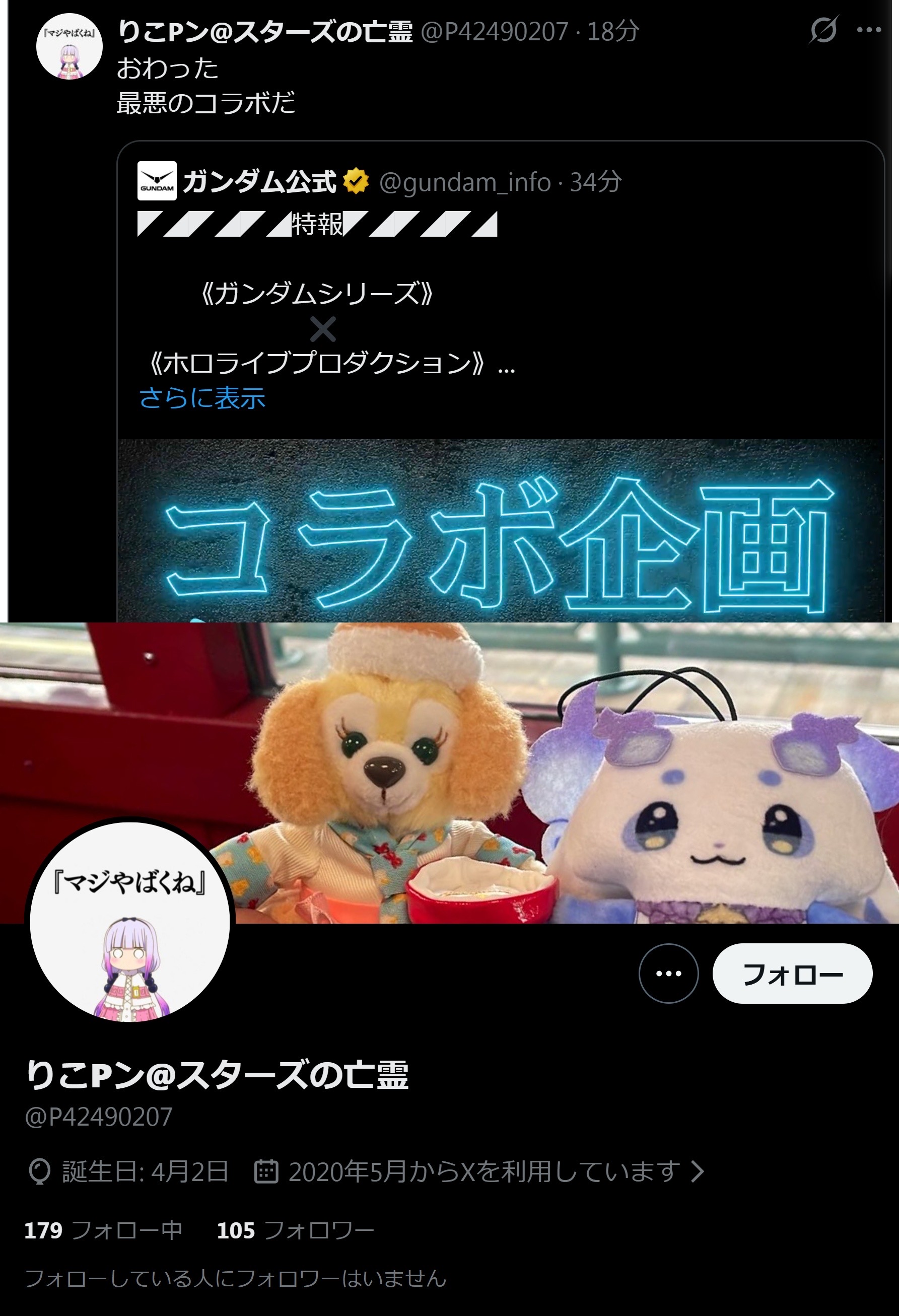 | … | 86無念Nameとしあき26/03/03(火)19:28:44No.1391374408そうだねx23そもそもガンダムってずっとコラボ相手にはクリーンなイメージ求めてきてたからガンダムのコラボに選ばれたって事はそれだけの信用を得られたって事すらホロアンはわからない |