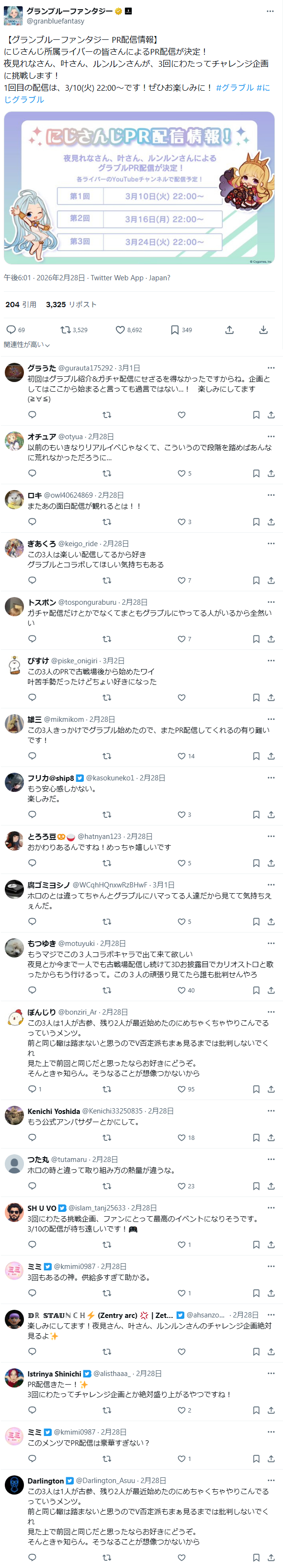 | … | 924無念Nameとしあき26/03/03(火)23:13:04No.1391436110そうだねx1>にじコラボでグラブルに新規が増えるはずもなく |