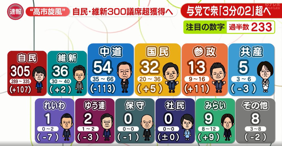 | … | 624無念Nameとしあき26/03/04(水)02:26:05No.1391462098+>中道は自民から6議席とみらいから1議席で |