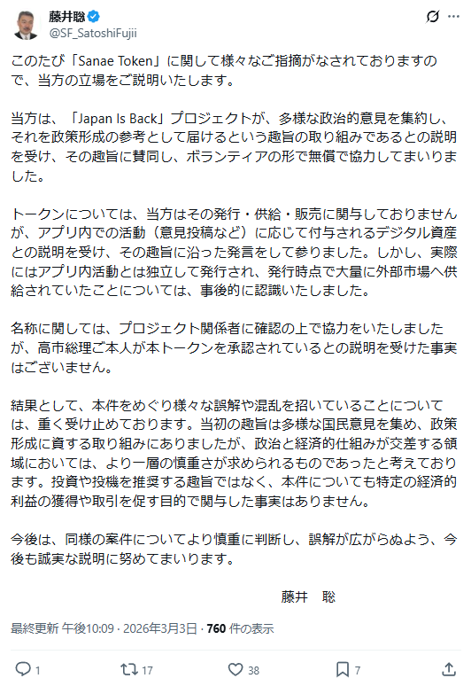| … | 135無念Nameとしあき26/03/03(火)23:06:51No.1391434652+ 1772546811972.jpg-(78337 B) >サナエトークンスレ |